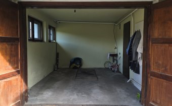 Na zewnątrz na budynku znajdują się miejsca postojowe na podjeździe przed garażem. Na działce znajduje się murowany budynek ogrodowy - gospodarczy. OTOCZENIE :