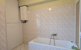 osobna kuchnia z wyjściem do ogrodu, dwa pokoje , duża łazienka z WC. Z wiatrołapu-przedpokoju przejście do garażu wewnętrznego, kotłowni, pomieszczeń gospodarczych, schowka.