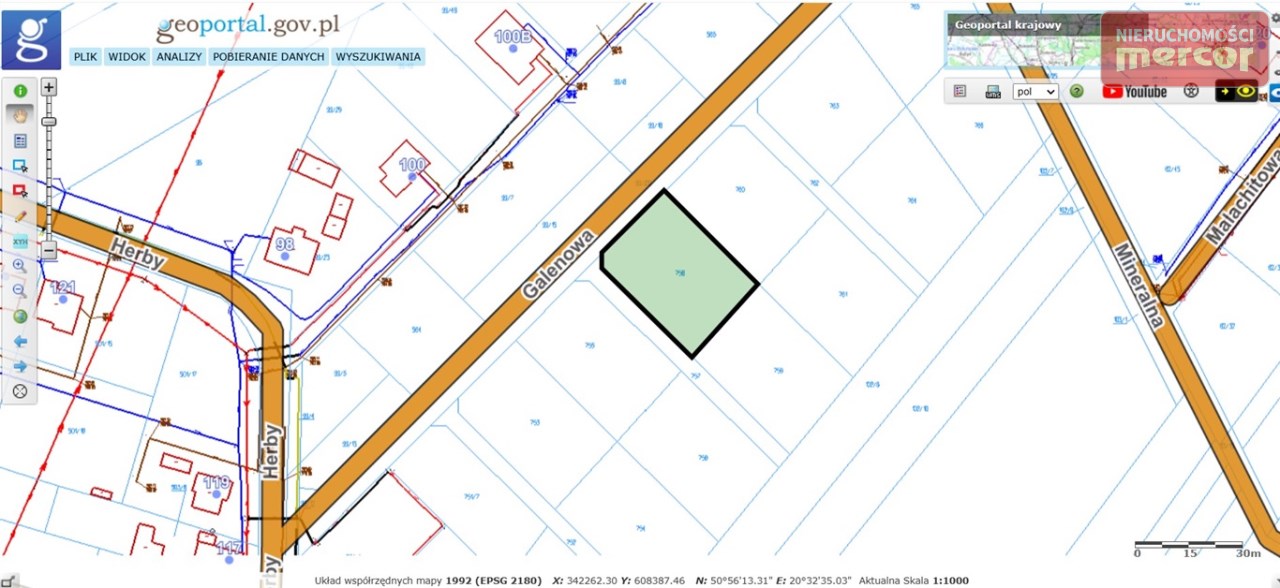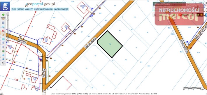 Oferuję do sprzedaży działkę budowlaną o powierzchni 1078 m2 położoną w rejonie ulicy Herby w gminie Miedziana Góra niedaleko Kielc.