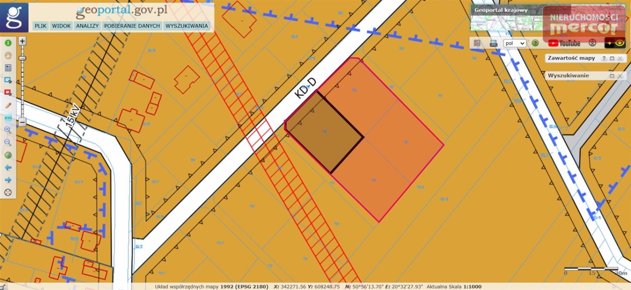 Oferuję do sprzedaży działkę budowlaną o powierzchni 1078 m2 położoną w rejonie ulicy Herby w gminie Miedziana Góra niedaleko Kielc.