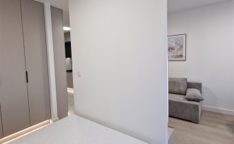 - przedpokój, sypialnia z dużym łóżkiem i materacem, salon z aneksem kuchennym + wyjście na balkon, łazienka z WC,